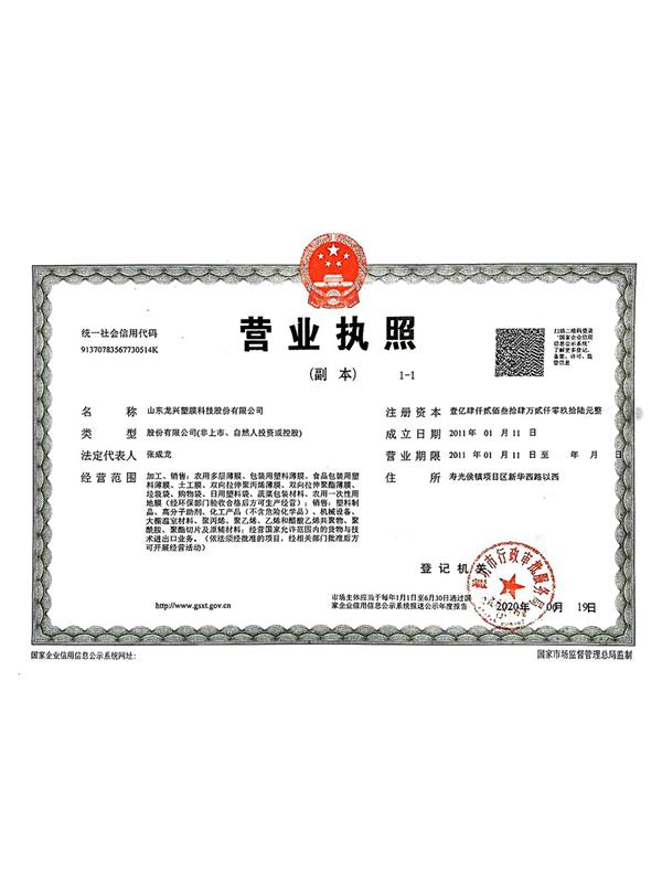 山東龍興塑膜科技股份有限公司前身為山東壽光龍興農膜有限公司組建于2011年,2018年10月重組,目前是壽光市國有控股公司、高新技術企業,是專業生產高檔農用薄膜、工業用薄膜的企業,是一家以產品制造為主,集科研開發、產品設計、技術服務于一體的綜合性企業。公司現有職工228人,各類工程技術人員97人,管理人員20余人,注冊資金14234.2096萬元,總資產102314萬元,目前是壽光市國有控股公司、高新技術企業。公司是中國塑料加工工業協會農膜專業委員會會員單位,中國復合材料工業協會會員單位,中國塑料加工工業協會雙向拉伸聚酯薄膜專業委員會會員單位...
